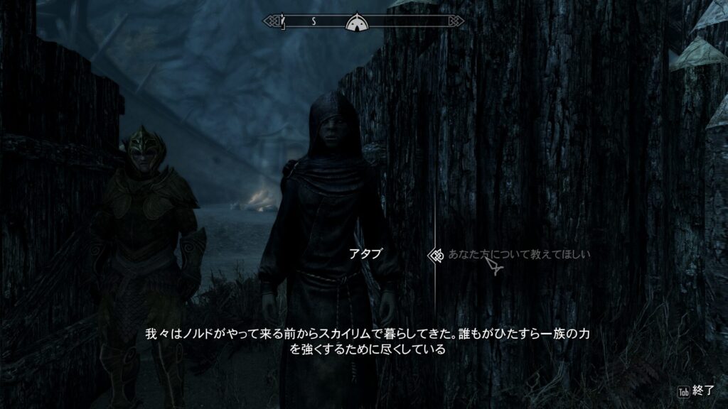 ていうか、スカイリムにはアルトマー、ダンマー、ボズマー、オーシマーとエルフ系統であろう種族がたくさんいますが、あんまり仲良さそうには見えないのがなあ…最も仲良さそう?と思われるアルトマーとボズマーですら、確か「ボズマーは寿命が短くなった云々」みたいなこと言われてた記憶ありますからね。お前ら、祖先一緒なんやから仲良くせえよ…!