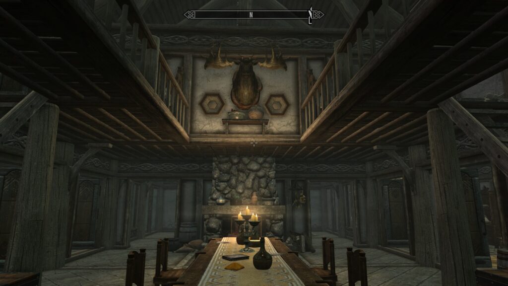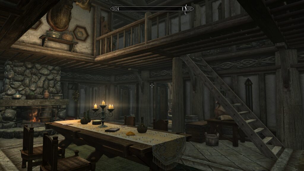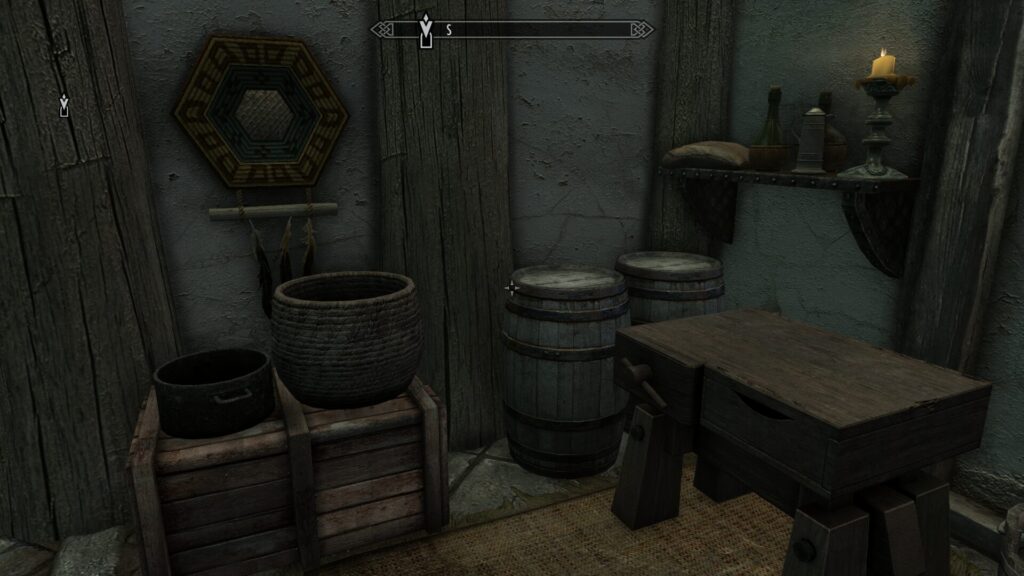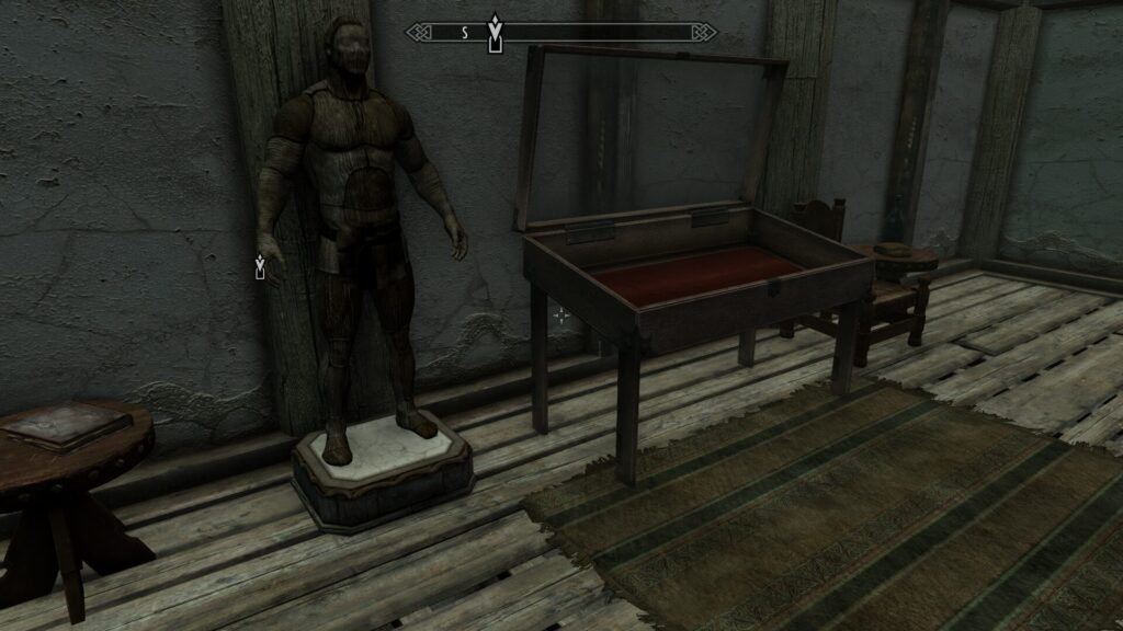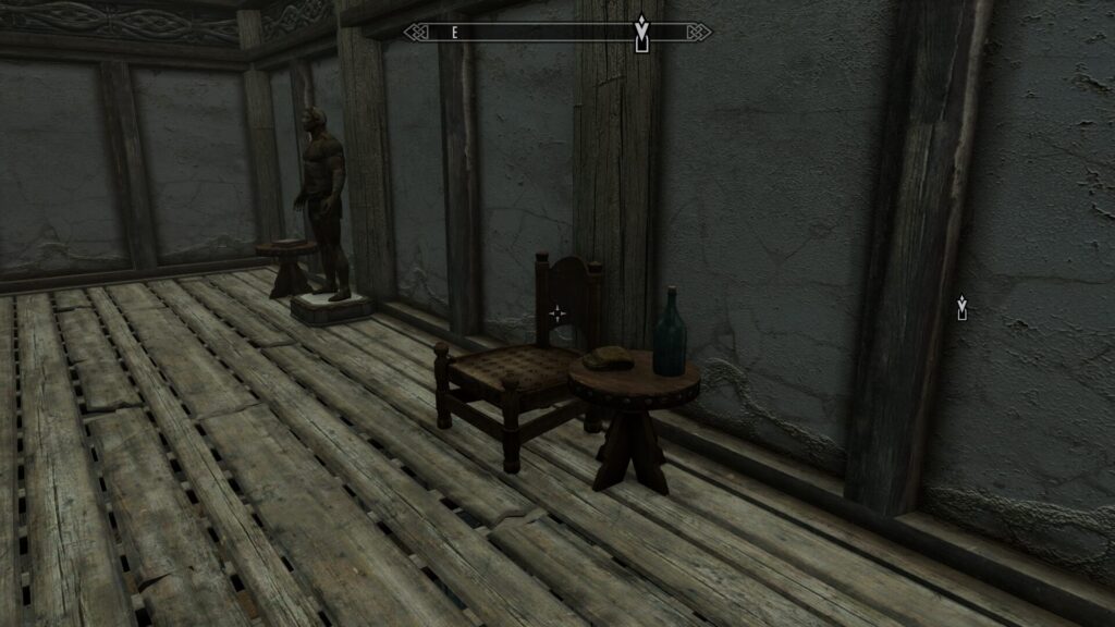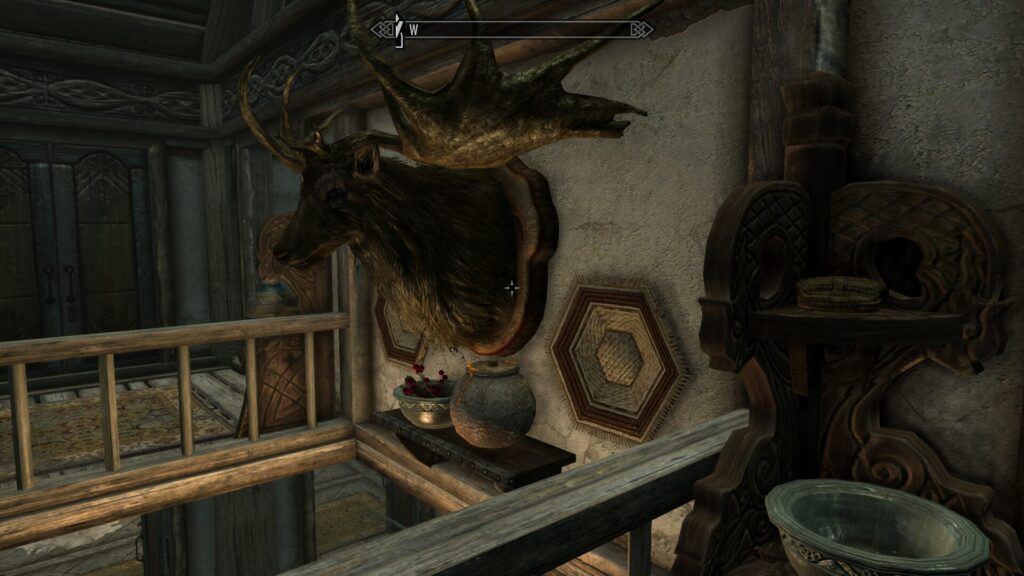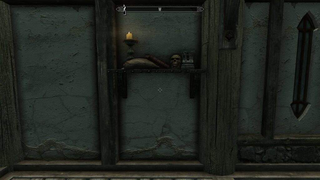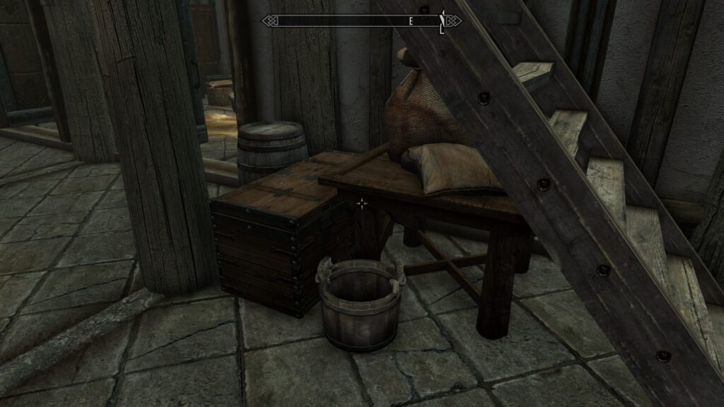 おばあちゃん家だったら間違いなく着物とか入ってそうな外見のタンスですが、廊下に出してるタンスっていうのは一体何を入れるものなんだ…?!現代人が見ても分からないということは、スカイリムの独特の文化の可能性がある…