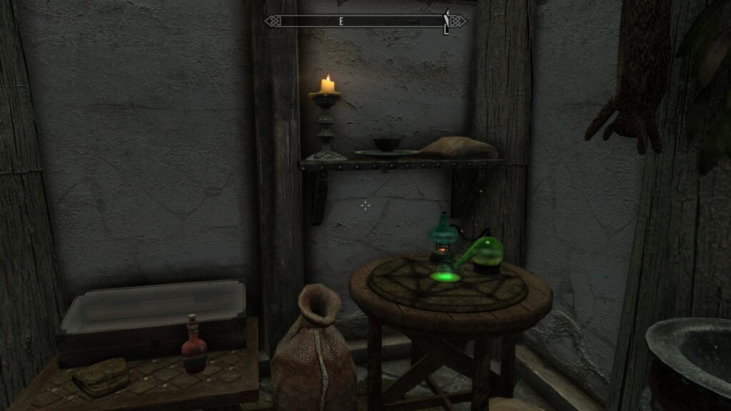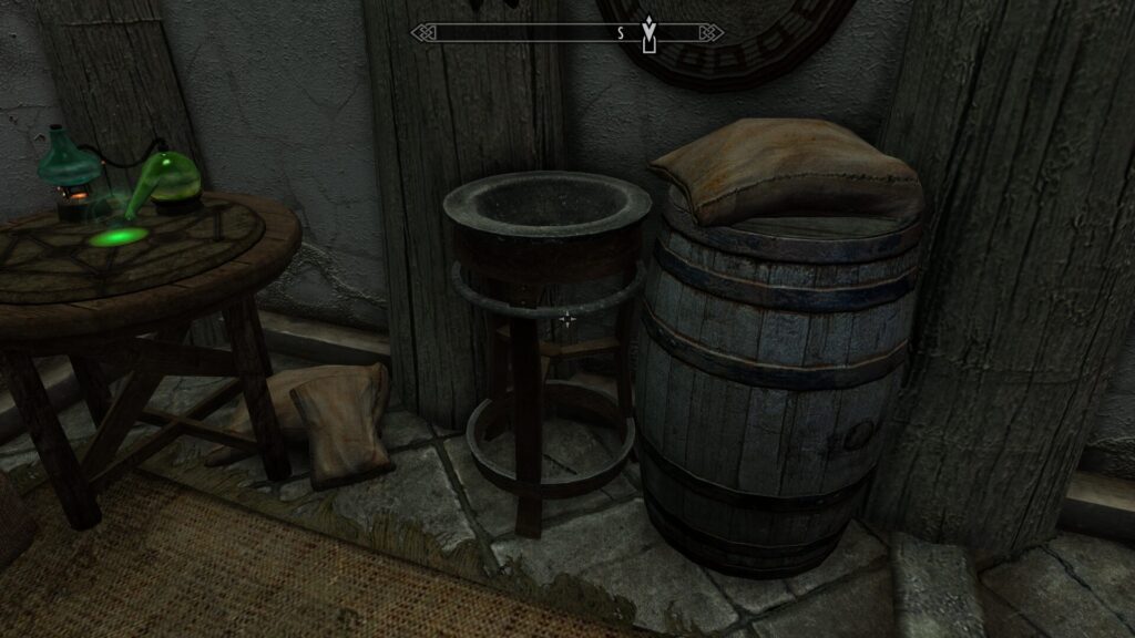 位置的には廊下に置く感じですね、付呪器。町の酒場にも置いてあったりしますから、スカイリムの家庭ではわりと一般的な電気製品みたいなもんかもしれません。いわば電子レンジみたいな。