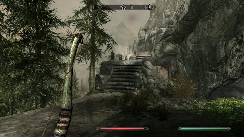 因みにこの南シュリークウィンド砦ですが、一瞬だけ入った瞬間によく分からん装置っぽいものとか見つけてるんですよね。おそらくシャウトがもらえるようなデカい遺跡じゃないかとは思います、お外の装飾もしっかりしてますし。また今度挑戦しましょう!