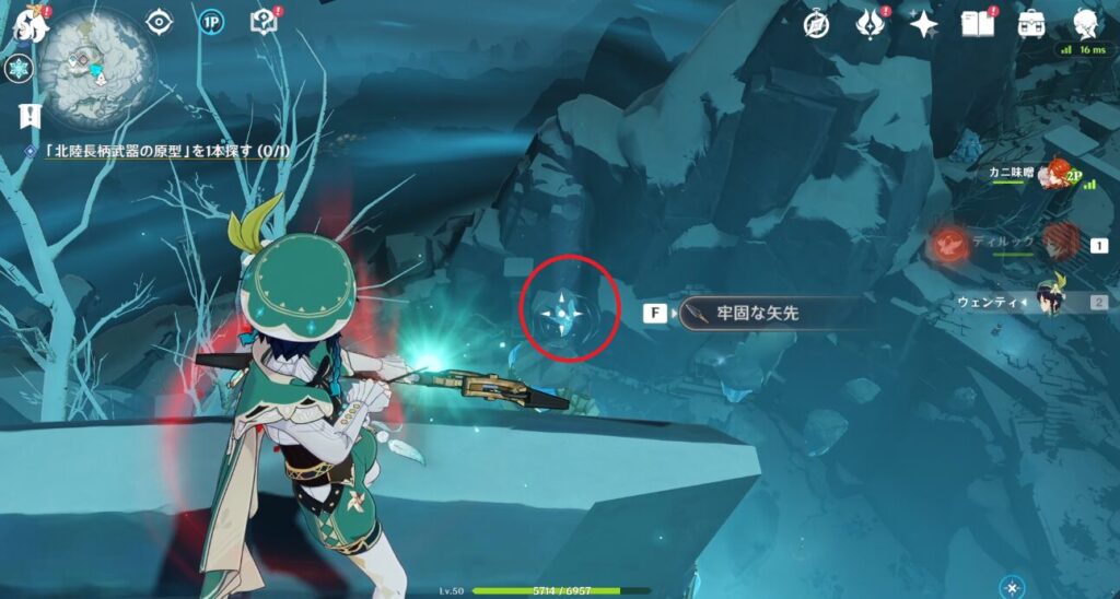 ここもあえて炎とかじゃなくて風元素なんだよな…つまりこのドラゴンスパイン山頂の攻略はウェンティがいるとものすごくラクになるという話です。なお風元素の弓使いは全体で3人くらいしかいないんだぜ…
