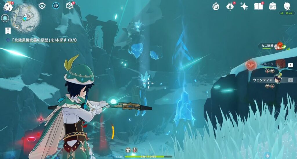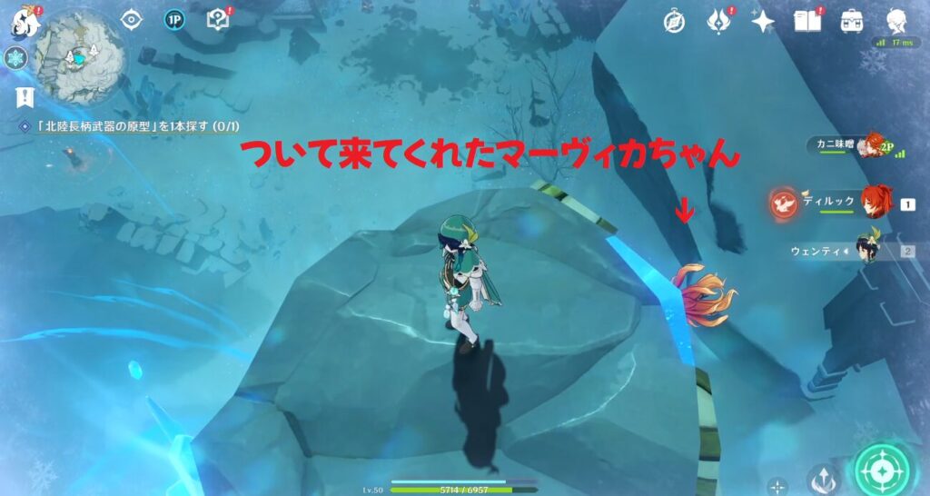 それではどんどん氷塊を溶かしていきましょう!ここは狙撃がめんどいだけで複雑なギミックはないので助かるぅ!ちなみにこちらはぬくもりポイントでブルブルしながらカイロこすってたらマーヴィカちゃんに轢かれたウェンティです。