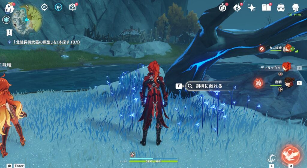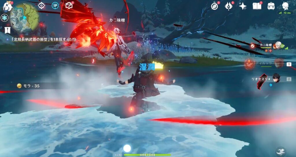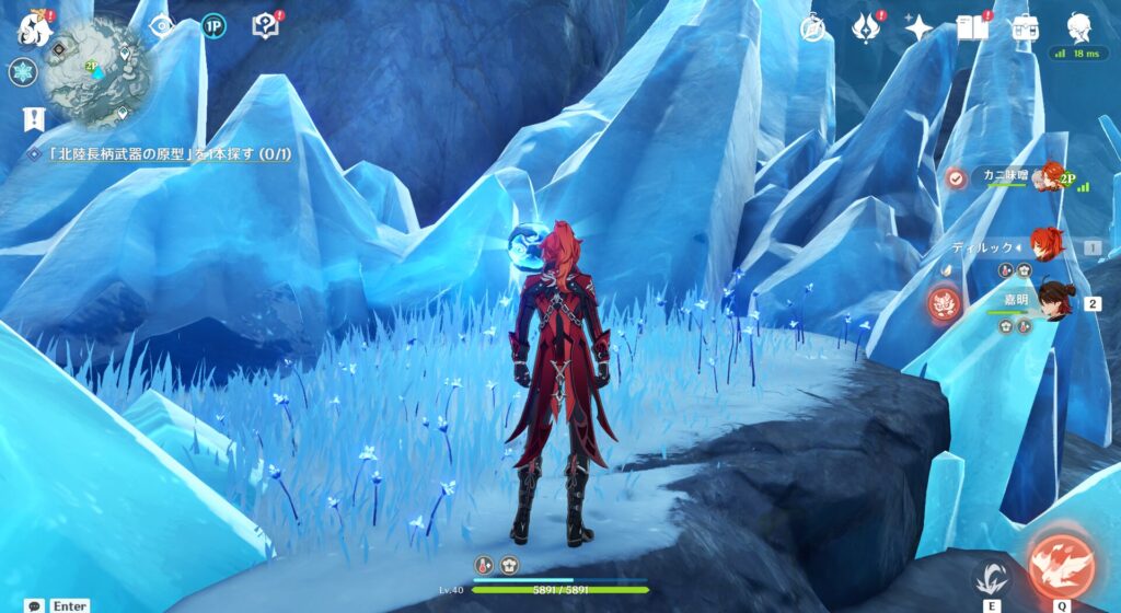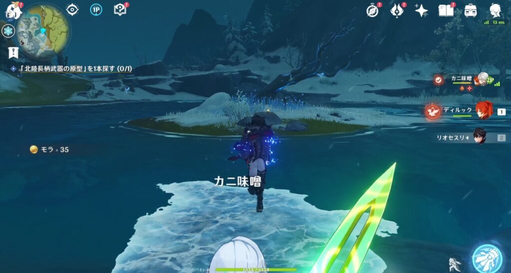 麓にある挑戦の1つなんですが、星蛍の洞窟と一緒です。つまり水辺に氷アビスが湧き出る時限制の挑戦なんですね。もういいよ、そのダルい挑戦は!てかせめて時限なくしてくれよ、そしたら多分時間かかるけど自力で倒せるんだよぉ!