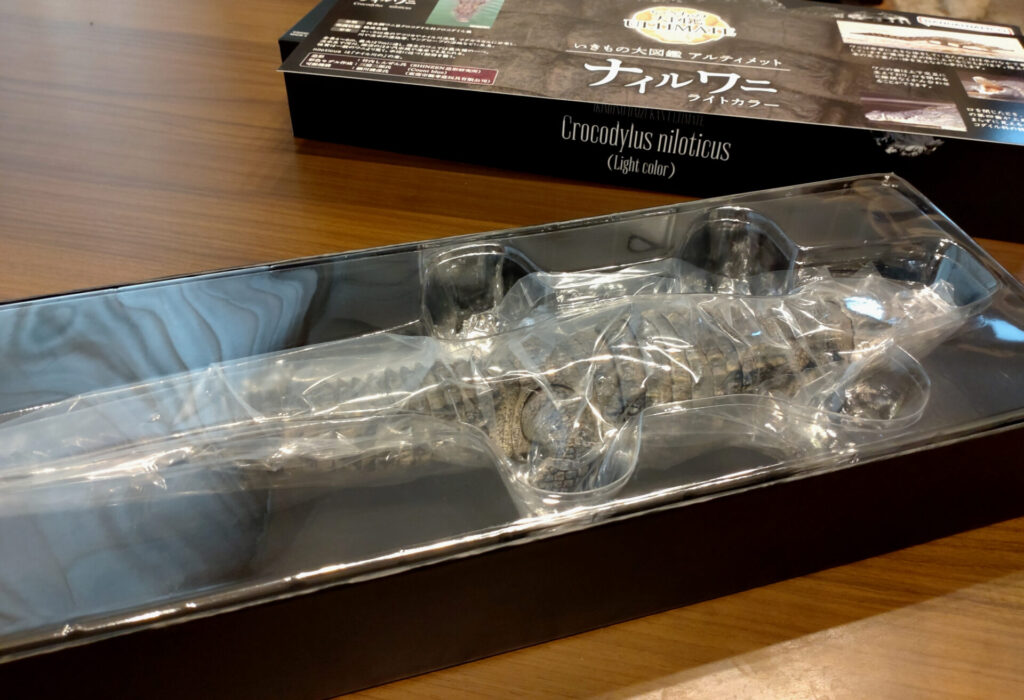 で、そのいきもの大図鑑がですね、たまに大人向けの高級フィギュアを出しているんです。そのシリーズがアルティメットといいまして価格は約2万円。サイズは40cmを超えるものもあります!そんで今回購入したのがそのアルティメットシリーズのナイルワニということですね!