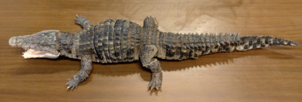 次はこのワニを埃から守るボックスを探さねえとな!何しろ全長40cmあるから、多分だけど100均のボックスじゃ無理なんですよ。いい感じのやつ探さなきゃ…!