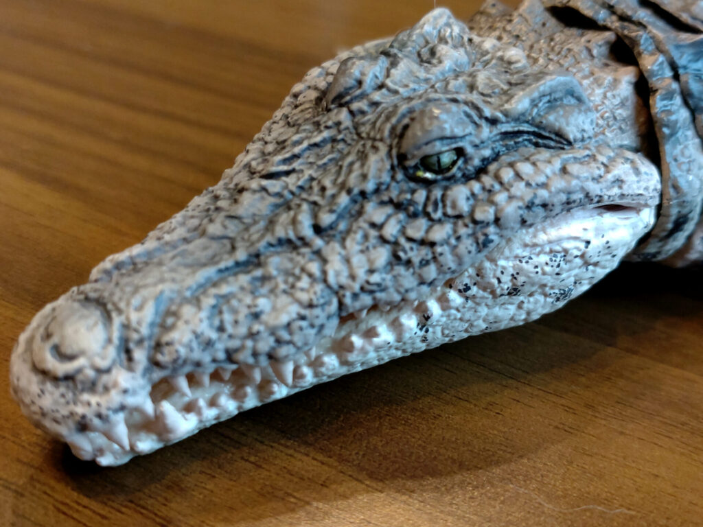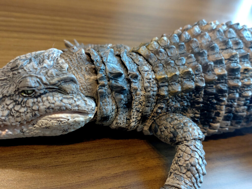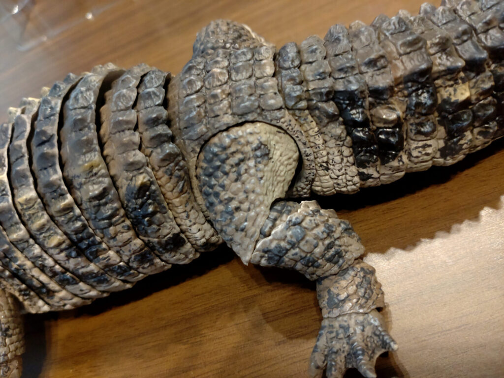 「ワニ フィギュア」とかで調べてもらったら分かると思うんですけれど、20cmを超えるようなワニのフィギュアで顎以外が可動するものってないと思う。かつ、サイズがデカくなればなるほど、塗装と質感が荒くなるんです。序盤から結構言うてますが、質感と塗装が最高なのよ!!