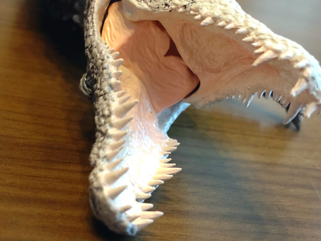 さて全体的にテンションが上がってしまうこのワニさんですが、もうホントね…とにかく色がいい。写真ヘタクソで申し訳ないけど、鱗の表面一つ一つがいい色してんだよ…!あと質感。表面の凸凹も丁寧に再現されているんだ…すっげー立体感感じるんだ…