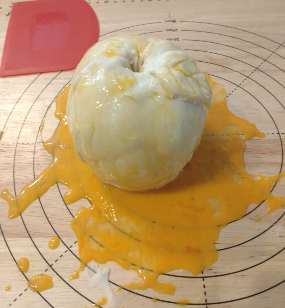 よぉ~し、これをさらにお洒落りんごにしていくため艶出しの卵を塗るか!!