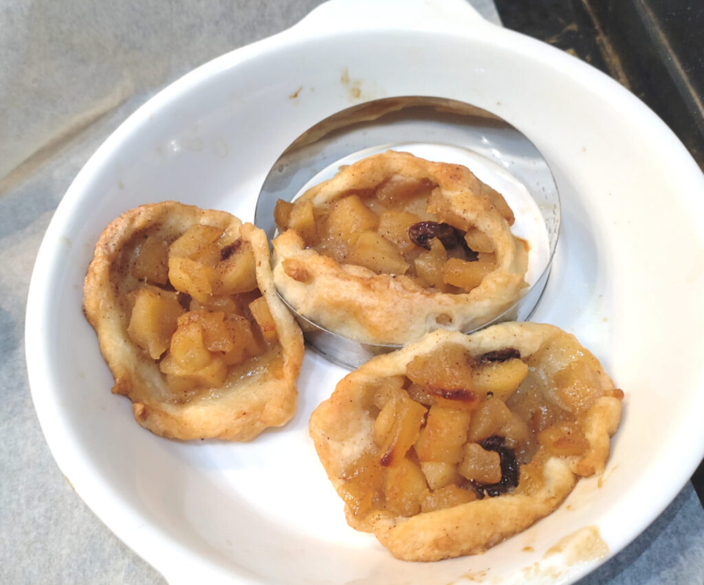 一緒に焼いてたこれはパイの成形の時に切り取って余ったパイシートで作ったプチりんごパイです。中身はデカいりんごパイの方と一緒で、スカイリムのリンゴ煮が入ってます。