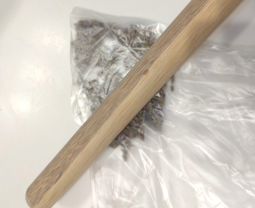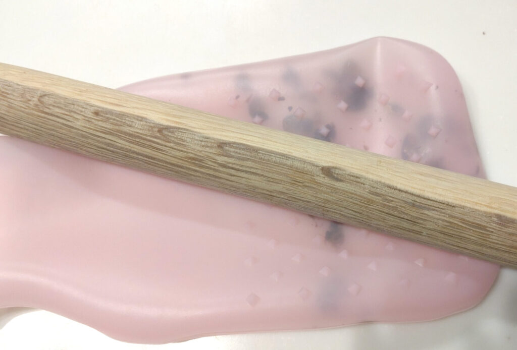 このままだとちょっと使いにくいよな?と思い潰そうとしたんですけれど…素手では固すぎて潰すのは無理でした。そこでパンこねる時の棒を使って潰したんですけれどこれ結構硬いよ!!