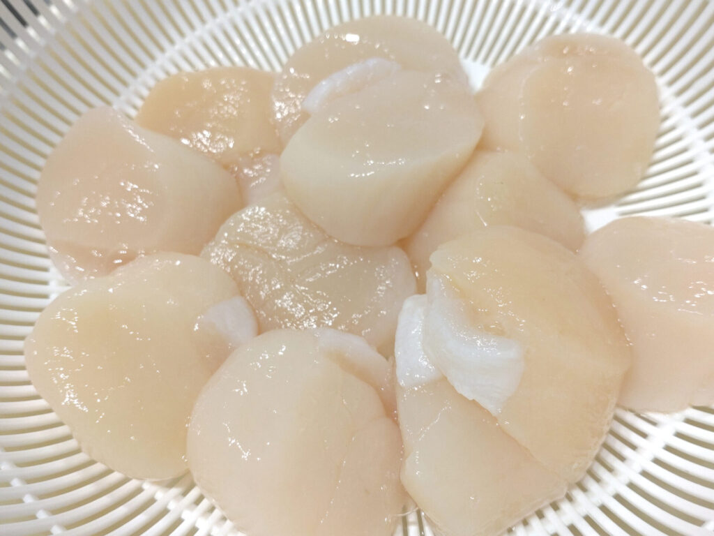 因みに、できればネットでは買いたくない(冷凍なので送料だけで1000円超え)のため、近所のデカいスーパーを片っ端から訪ね歩いたんですけれど、ホタテが売ってなかったんですよね。というわけでこちらをアマゾンで買いました!なお数日後にスーパー行ったら半額くらいでホタテ売ってて発狂したのはまた別のお話☆