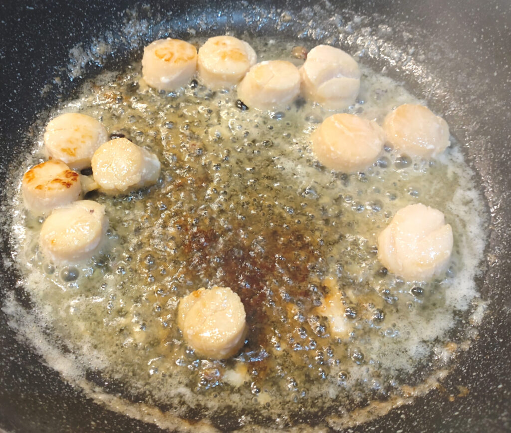 ちなみにこのソース、ほっとくとすぐに脂が固まってめっちゃ白くなってしまうのでホタテは終盤に作った方がいいかもしれない。何となく嫌な予感がしていたのでホタテとソースは分けて置いておいたので助かったぜ…!食べる直前に温めたソースを掛けるのが1番おいしいと思う!