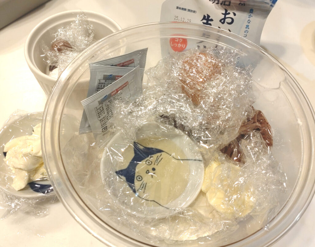 これはクリスマスパーティー前日に作ったスープですので、とりあえず冷蔵庫にインしておきましょう!多分温め直しの時にでもちょっとコンソメと追加の水で調整したらええ感じになるやろ!もしならんかったとしたらコロッケにして食います。多分それでいけるから。万物はコロッケに帰すから。