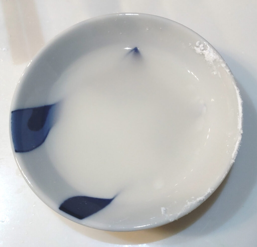 実はこれ、熱い鍋に投下するとソッコーで表面だけが溶けちゃってダマになるらしいです。初めて知ったわ!コーンスターチって1-2年に1回使うかどうかの粉だから経験値がフツーに足りんかった…!どうやら調べてみたところ、「あらかじめ水に溶かしてから鍋に」という話らしいです。