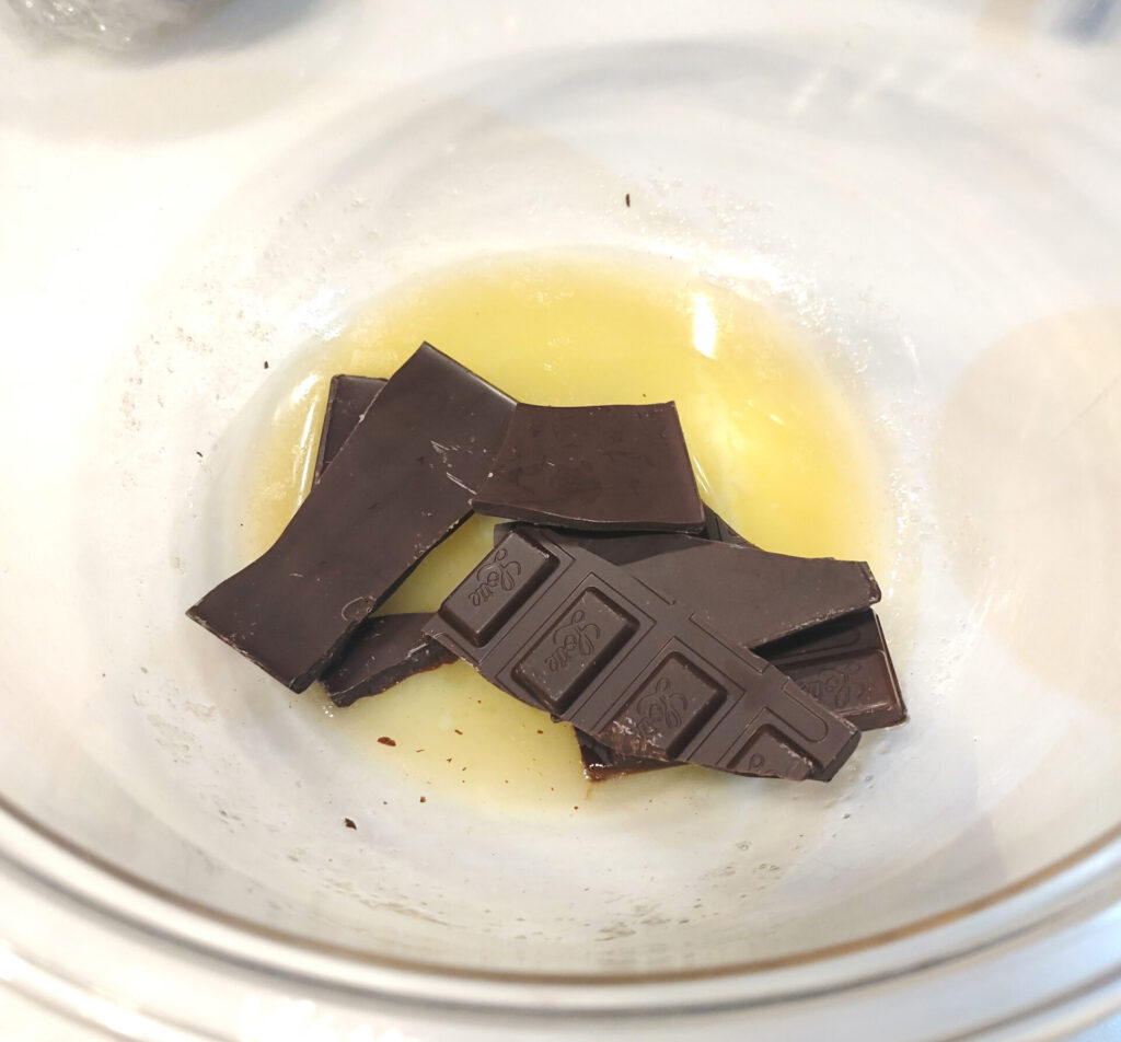 生地にチョコレート入れるとどういう影響が出るのかさっぱりなんだが…何事も挑戦だ、やるしかねぇ!!ちなバターと一緒にレンチンで溶かしておくと楽だと思います。