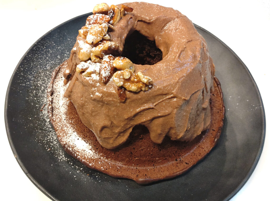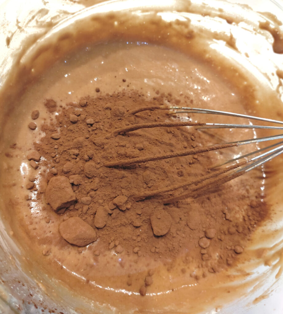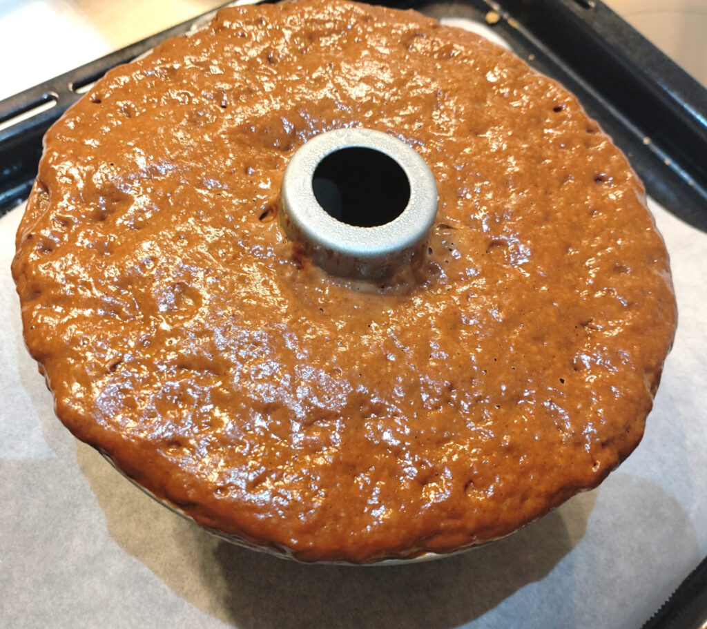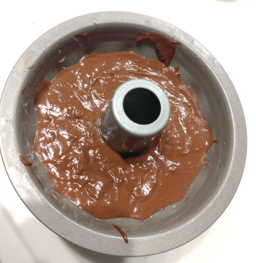 つまりチョコレートやココアパウダーをどのくらい入れて調整したらいいのか完全にカンでいってるんですが、生地に関しては以前にうまくいったレシピの2/3量にしておき、こちらのチョコレートクグロフのレシピを参考に微調整してみました。