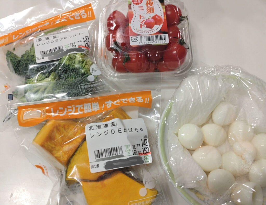 具材はブロッコリー、かぼちゃ、ミニトマト、うずらの卵、そして冷蔵庫に入ってる特売のアルトバイエルンです。チーズフォンデュってしたことないんですけれど、多分こんな感じのはずだよな。ちなみにこの「レンジで簡単!すぐできる野菜」なんですが…おわかりいただけるだろうか…