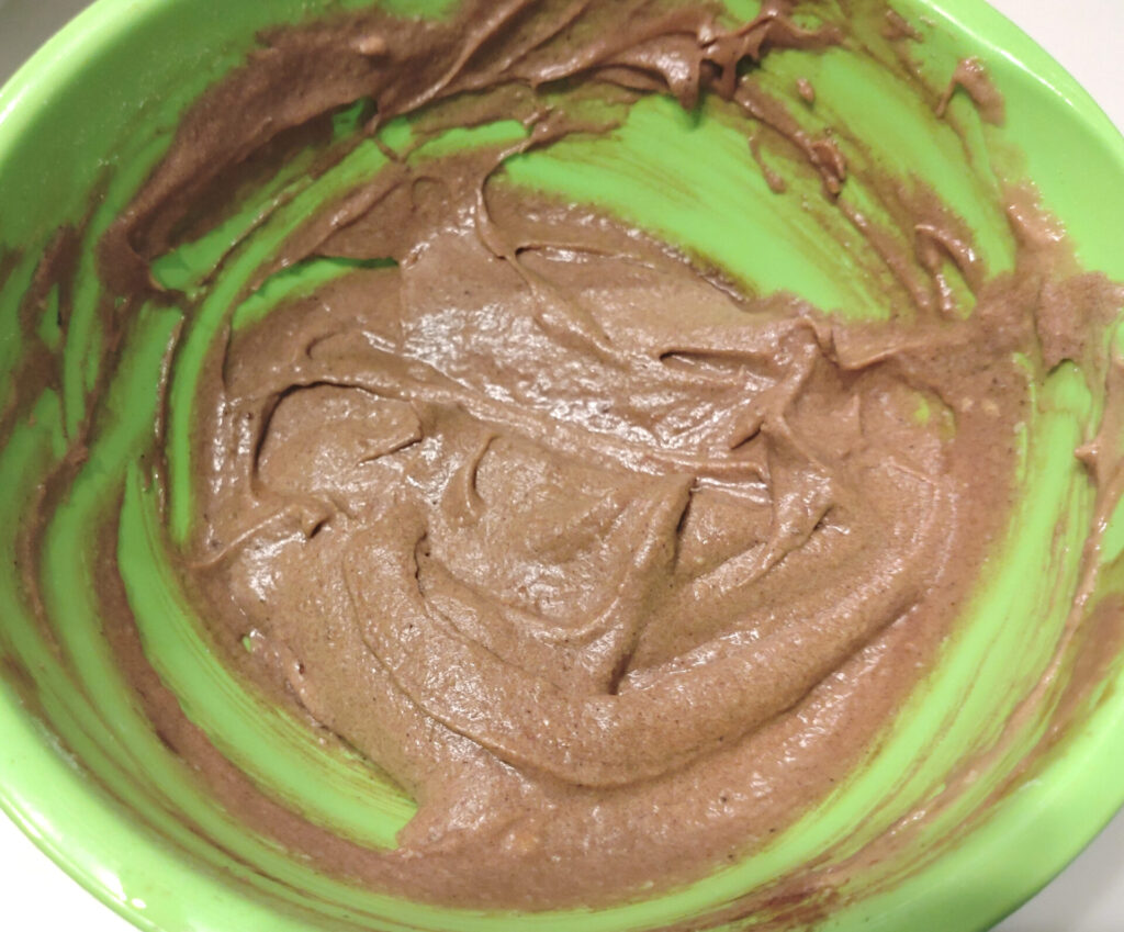 これ試作一切してないからすげー不安なんだけど…!まず色々と混ぜましたところ、こんな感じの色になります。もうちょっと濃い色で出てくれたら嬉しかったが、クリームチーズが入っているから仕方がない。あと、ココアパウダーは明らかに入れすぎてたから小さじ1もいらんかったな!