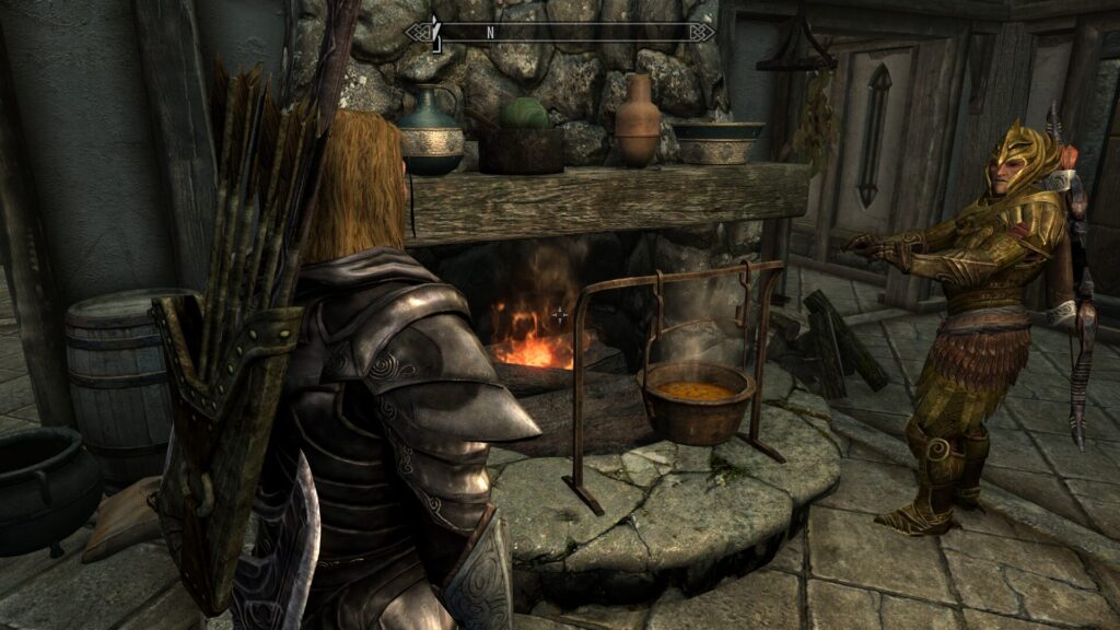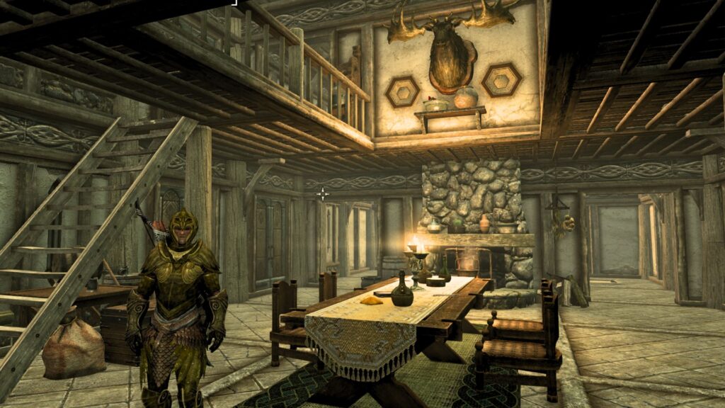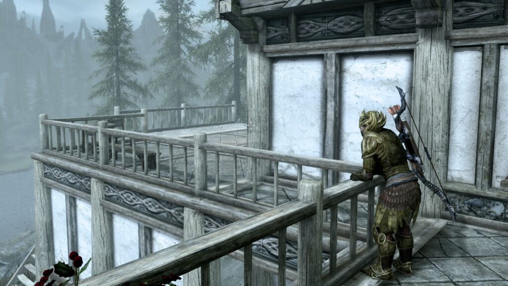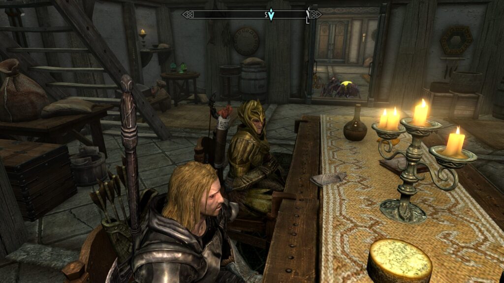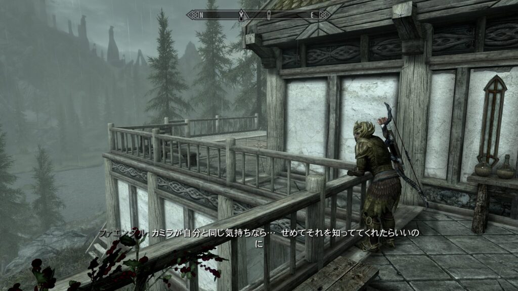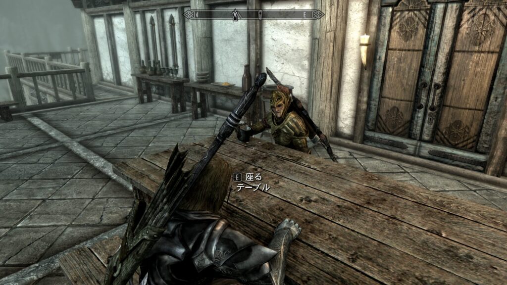 実はスカイリムのカメラってPC版ならコンソールから調整できるんですけれど、コンソソールって触るの怖いから触ってないんだよ…!ということでツーショを撮るとどうしても画角が難しくなるのである。いつかはちゃんと勉強して触りたいけどな、コンソールな。