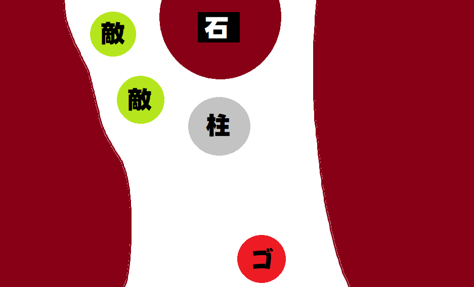さて、「これ絶対ボスだろ!」っていう扉を開けますと、こんな感じで「これ絶対ボスだろ!」みたいな広めのフィールドに出てきます。古今東西、フィールド広いのは絶対ボスなんだよ!!
