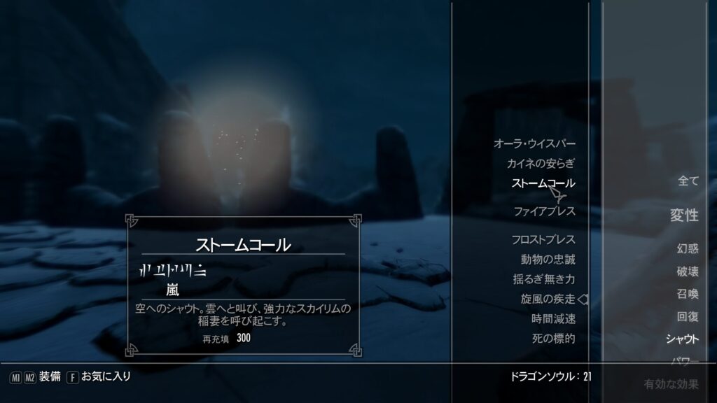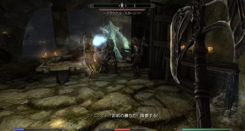 ※ただ、グレイビアードの先生達は「シャウトは神聖な祈りの言葉であり、俺TUEEEするためのものではないよ」と言っていたし、ブレイズのデルフィンさんからは「サルモールにドラゴンボーンってバレると面倒なことになるで」と言われているので、世界観的にはシャウトを人前で連発しないこと自体は間違いではない。