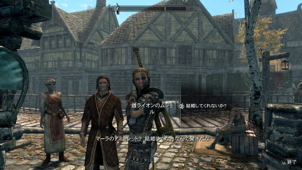 スカイリムはグロいイベントが多めですが、時々そういうハッピーイベントが起きるからな!そうと決まればマーラマッチングアプリのプラチナ会員であるキューピッドゴリラ、出撃です!