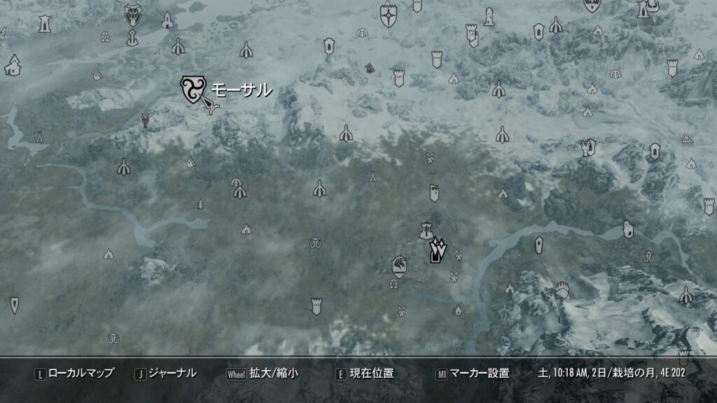 モーサルはホワイトランのはるか北、ソリチュードのちょい右に存在する地域でして、沼地がヤベェというホラーチックな土地となっています。ほんともうあそこ怖いんだよ!なお、臭いも酷いってヴィルカスが言うてました。