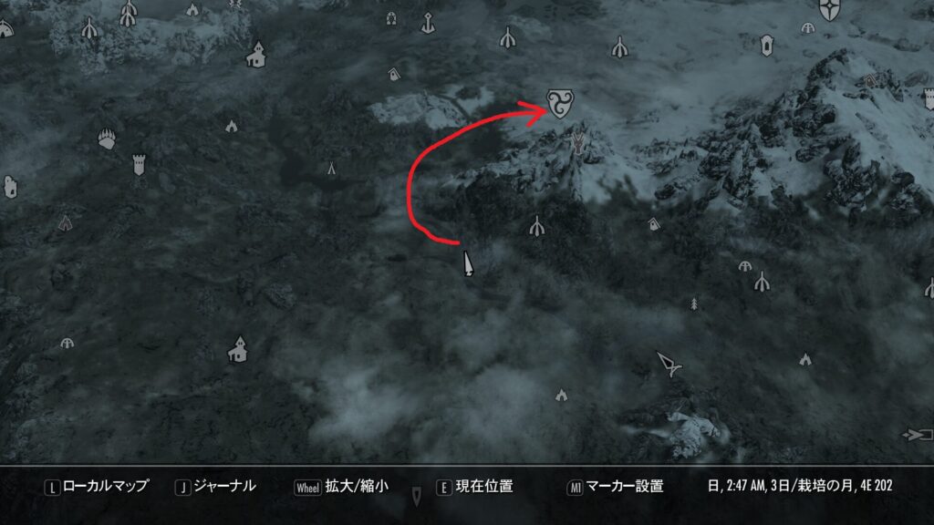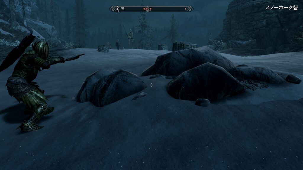だいぶ大規模な墳墓ですので、多分シャウトが取れるようなデカいダンジョンでしょうね。うわー…行きたくねえ…!そういうダンジョンはトラップとかがめんどくさいからゴリラのIQでは無駄にカロリー使ってしまうんだよな…!