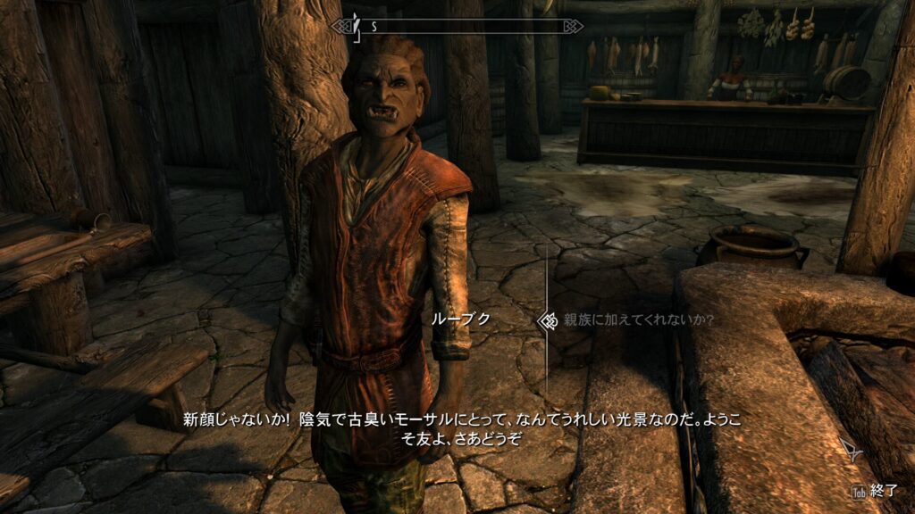 こちらの陽気なオーク男子はルーブクさんといいまして、陰気でホラーなモーサルにおいて唯一の陽キャです。まさかこの町にこんな陽キャがいるとは思っていなかったんだぜ!余所者ゴリラにもすっげー明るく接してくれたよ!ありがとうな!