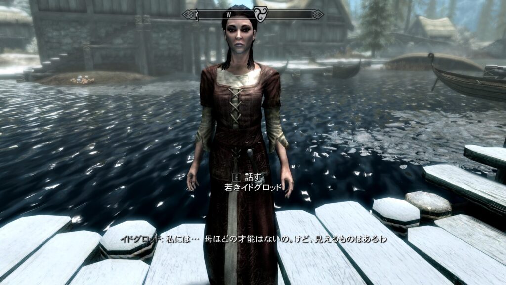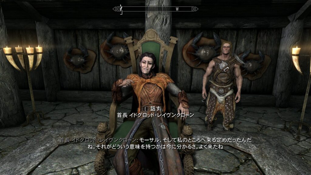 ひとまずそれはいいとしまして、首長は「スカイリムに暗黒の時代が近づきつつあるから争ってる場合じゃないんだよ…!」と言います。暗黒の時代って何なんだ…ただの印象ではありますが、どうやら首長は予言とかをするタイプの魔女っ娘首長なんじゃないか?これ…
