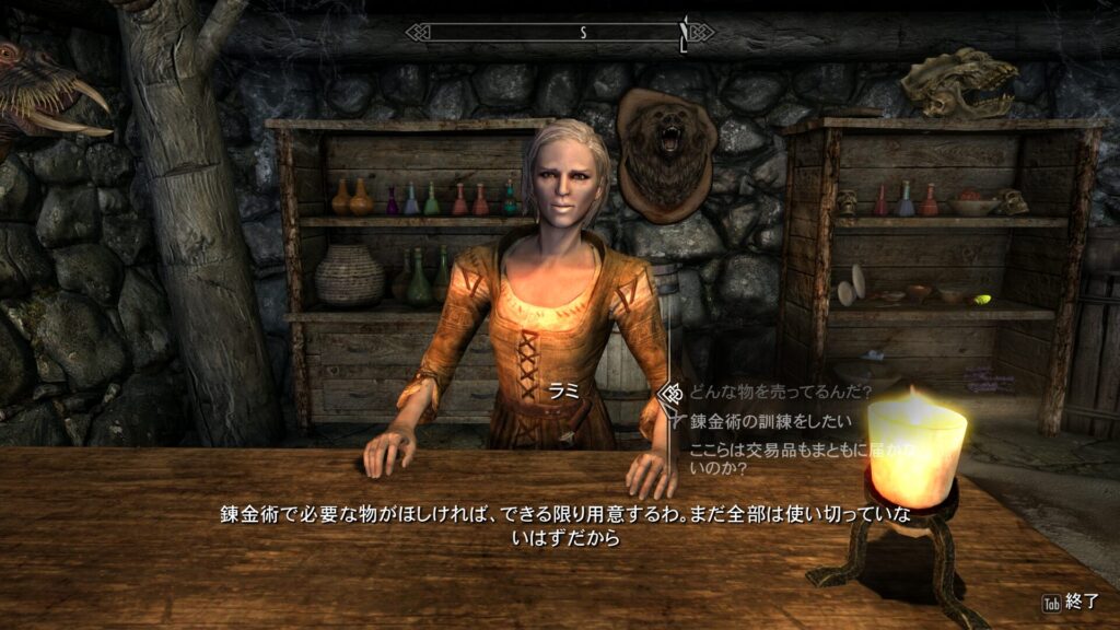 といったわけでドキドキしながら夜を待つことになったんですけれど…それまでに村の中で集められる情報を全て集めてしまうことにしました。こちらは錬金ショップのラミちゃんです。
