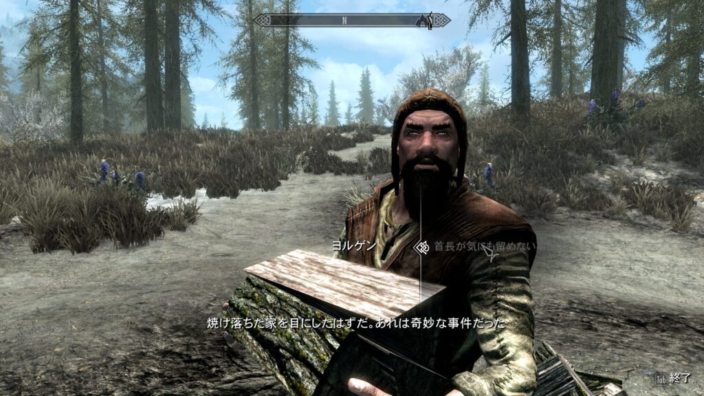 脳筋である一般的なノルドであろうヨルゲンさんは「そんなことより反乱とドラゴンをどうにかしてよ!」という至極真っ当な意見を述べるのですが、神託の内容については教えてくれませんでした。おそらく従士とかになったら教えてもらえるのかな?