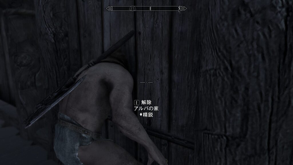 さあ衛兵さんが通り過ぎたタイミングを見計らい、透明化の薬で胃袋ちゃぷちゃぷのニンジャ、村の大通りを背景に潜入です!ほんとこの鍵触る瞬間がいっつも怖ぇんだよ…!町の中での犯罪慣れてないからドキドキする…!