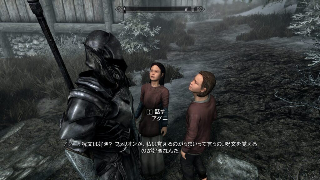 まずはそれを解除しておくためにも、ソンニールさんにアルバちゃんのことを教えましょう!ただ、その道中でちょろっと村の子供たちと会話が出たので先にそれだけご紹介しておきますね。まずこちらはアグニちゃんといいます。