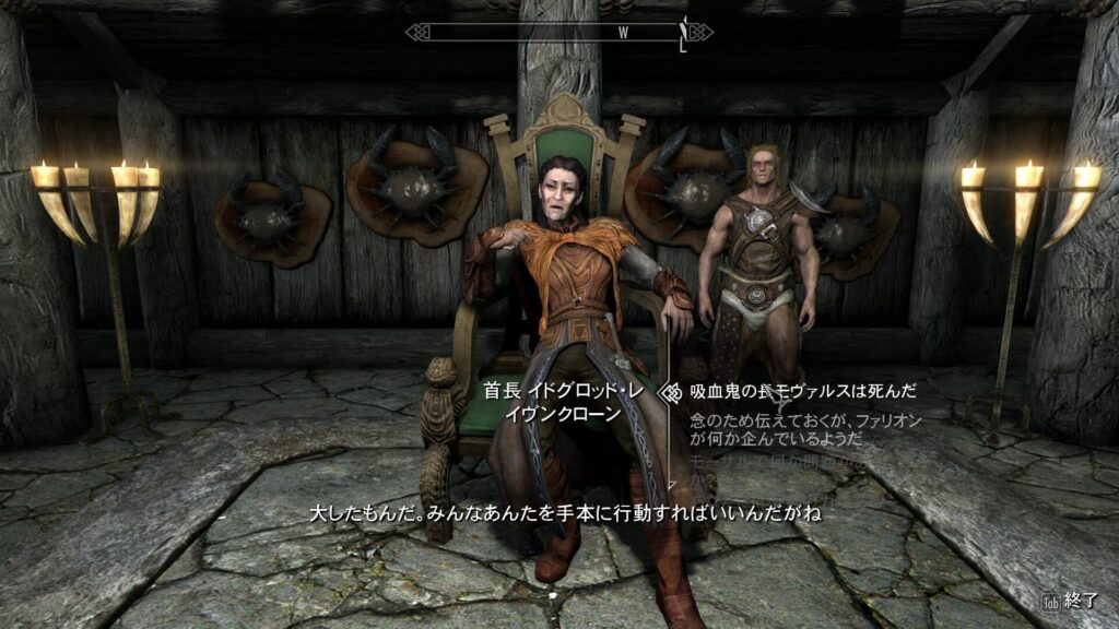 さてモーサルから当面の危機は去ったということで、次はモーサルの従士を目指しちゃおうぜ!という感じになります。ちょうどマジカル首長の娘さん、若きイドグロッドさんからホワイトランへ手紙を届ける仕事を引き受けていますので、それを解決しちゃいましょう!
