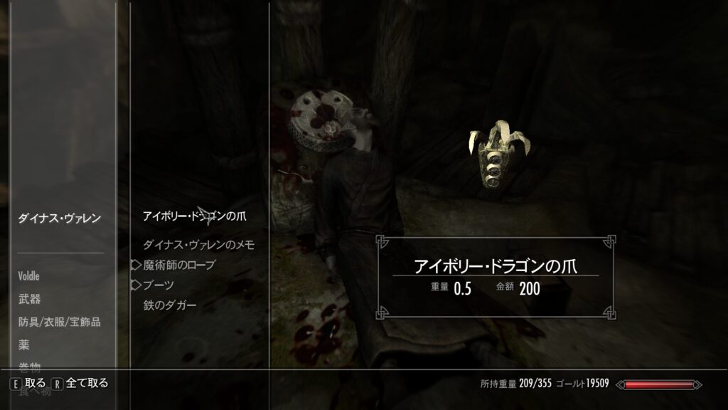 ていうか今思い出したけど、ドラゴンの爪を持ってる奴がダンマーばっかりなのはやっぱり何か理由でもあるんか?!今まで三連続で前の所有者がダンマーだったんだよな…ダンマーといえばアズラ信仰を持っていてネクロマンスにちょっと関わりが深そうな民族ですけれども…