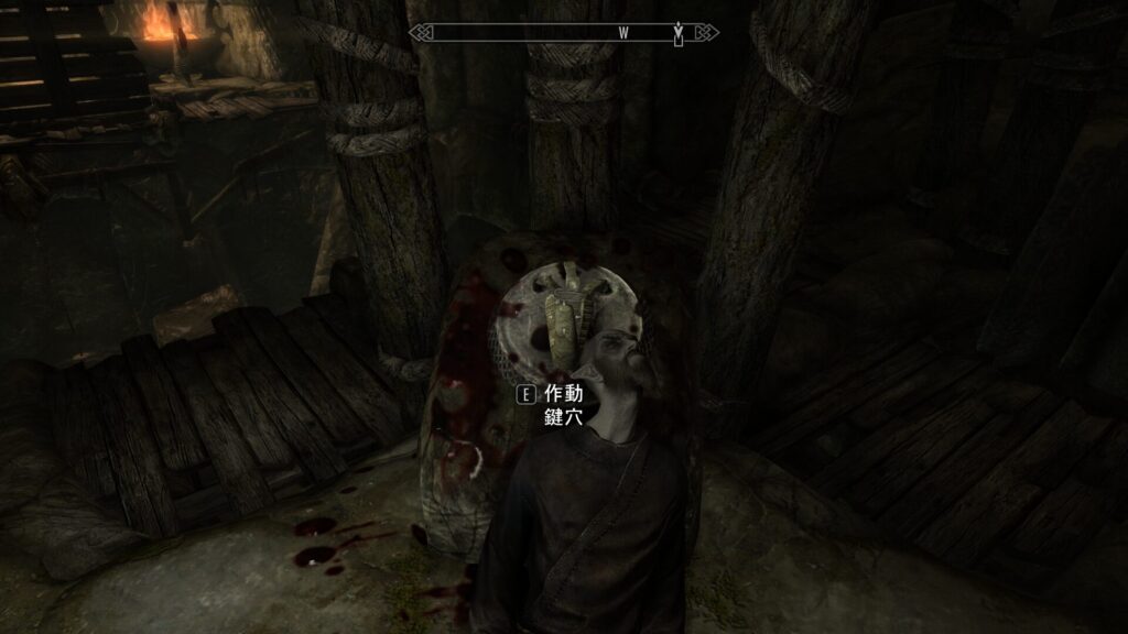 で、宝箱部屋以外で使うのはここ!ダイナスさんが死んでたところにある鍵穴です。