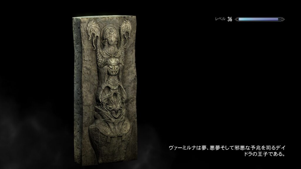 デイドラ図鑑(ファレンガーおじさんから借りパクした)によるとバエマニアっていう名前表記になっていますが、正しくはヴァーミルナです(先輩ドラゴンボーンがいつだったかに教えてくれた)。夢と悪夢を司るということなんで、十中八九ドーンスターの皆に迷惑かけとんのコイツやろ!!と思っていたのですが…