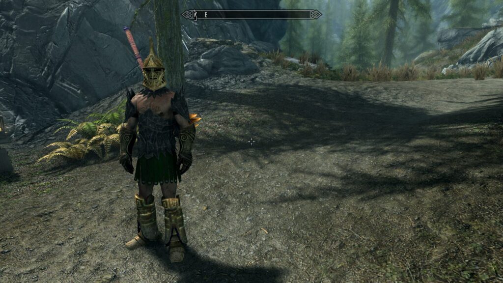 一見するとシルエットはミニスカにルーズソックス、胸チラ放題のオシャレ女子といったところですが、顔面のドワーフ装備があまりにもおっさん過ぎるんだよwwwちな背負っているのはナーブシャターとかいう激ヤバデイドラゆかりの、持ってるだけでSAN値がすり減りそうなハンマーです。それをおしゃれに取り入れるのはあまりに上級者過ぎる…!さすがのファッションセンスやな、相棒!