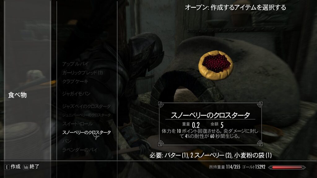 それを引っ越しの度にするのはちょっと時間的にキツイということもあり、引っ越しはウェルカムスイーツで喜んでもらおう!という方向性に決まりました。なお、今回作ったスノーベリーのクロスタータですが、スーパー神本スカイリムのクックブックにも載っているスイーツとなります。