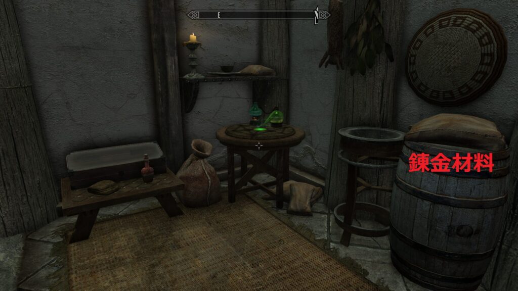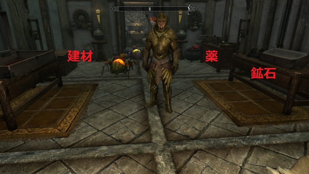 ホールの右手の錬金場所には材料を置いてます。オーソドックスな配置だと思うぜ。