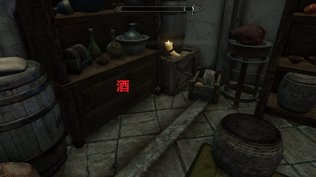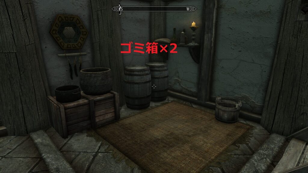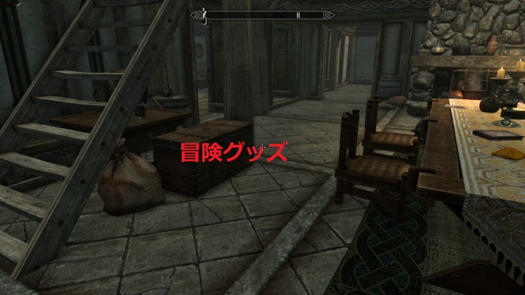 ホールの左手には、今回引っ越しの時に一時的にゴリラの荷物を置いてた場所があります。ここは鍛冶能力が上がる装備など普段の冒険に持ち歩いていたら大変なものなんかをしまっておきましょう!まあ今までなんでずっと持ち歩いてたの?って話ではあるんですが…(バカだからです)