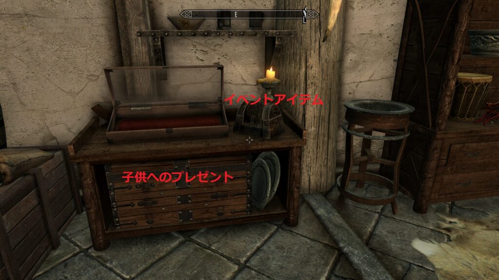 ここはイベントで得たアイテムと子供へのプレゼントが置いてあります。