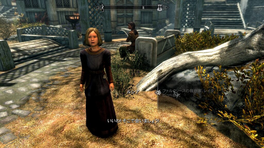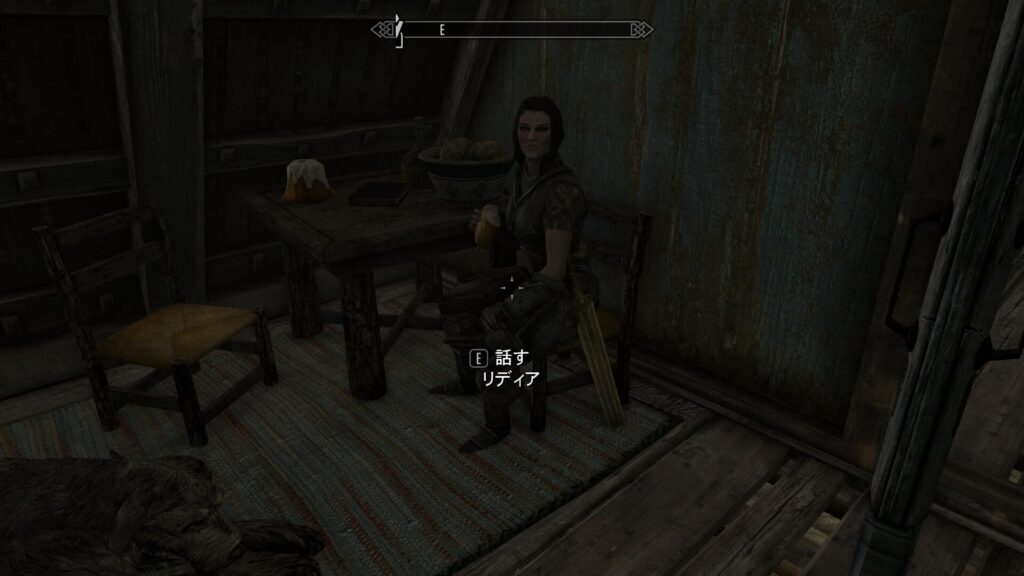 まずはホワイトランのお家の留守番をしてくれるリディアちゃんにご挨拶しておきましょう。新居にリディアちゃん連れていけないのショックでしたが、その分新しい出会いが増えたということでもあります。