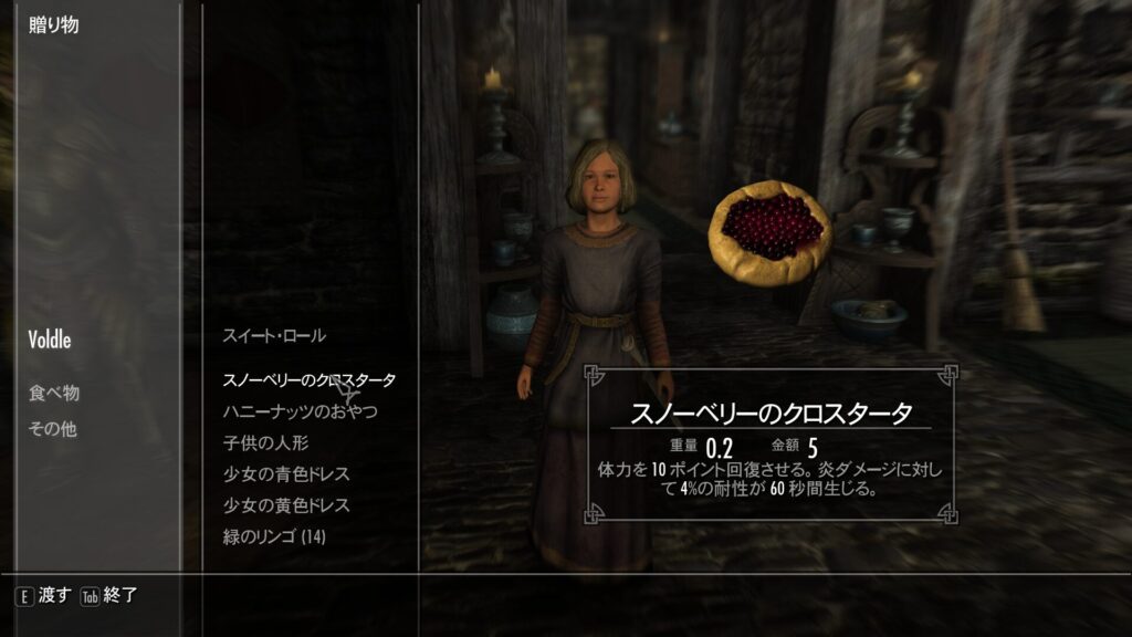 ルシアちゃんは生まれも育ちもスカイリムのジモピーですから、きっとこのベリータルトを気に入ってくれるに違いないぜ!でも魔女宅に出てきたお嬢さんみたいに「あたしこのパイ嫌いなのよね~」とか言われたらどうしよう。その時にはスイートロールかハニーナッツのおやつを作り直します!