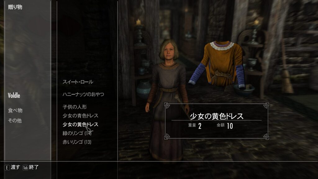 お洋服も新しくなって気分一新!やっぱルシアちゃんはこの黄色ドレスが似合うと思うんだよなあ。襟のレースが可愛いよね、このドレス。女の子のドレスって黄色・赤・灰色・青は知ってるんですが、他にはどんな色があるんでしょうかね。なんかソリチュードに行くとおしゃれ服屋みたいなのがあるって聞いたから、ちゃんとソリチュードに行った時にはお土産買わないとな。