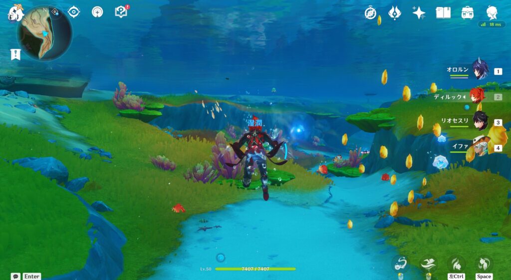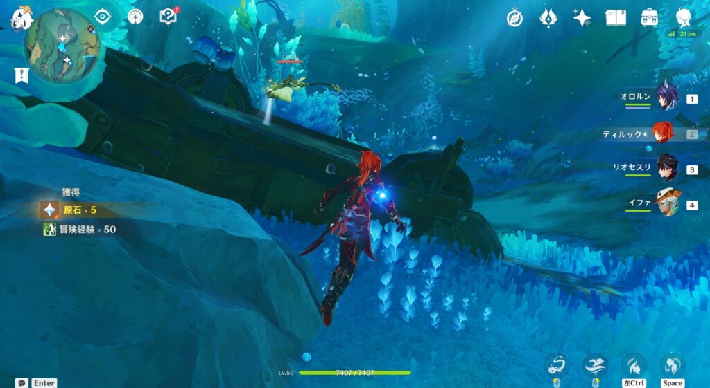 赤ゲージが出るから多分倒せるんだと思うんですけれど、攻撃手段が全然分からん…!モンハンみたいにナイフ出したりとかもせんし、そもそも水中攻撃って武器を振り回すことができないんですよね。うーん、まあこのへんはフォンテーヌに行ってから調べたんでええやろ。