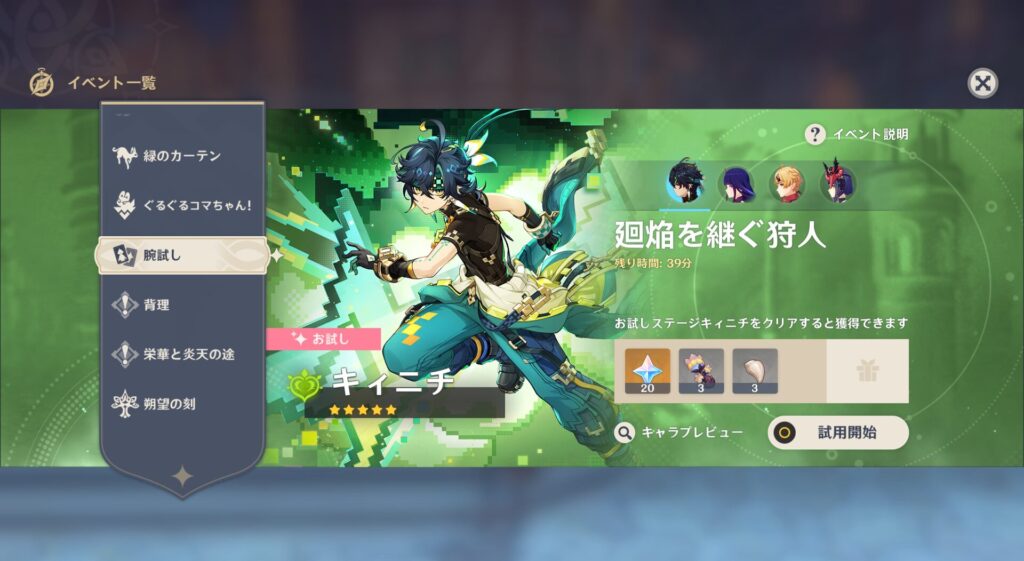 この子は可愛いよ…!なかなか好みのタイプだよ…!てか稲妻の女子って基本可愛いよな?!でも今回のガチャ、他の☆4が既に持ってて使ってないリネットちゃんと全然知らん稲妻男子なんですよね…それですっごい悩んだ挙句、今回はガチャはしないことにして試用の報酬だけ貰おうってことにしたんです。