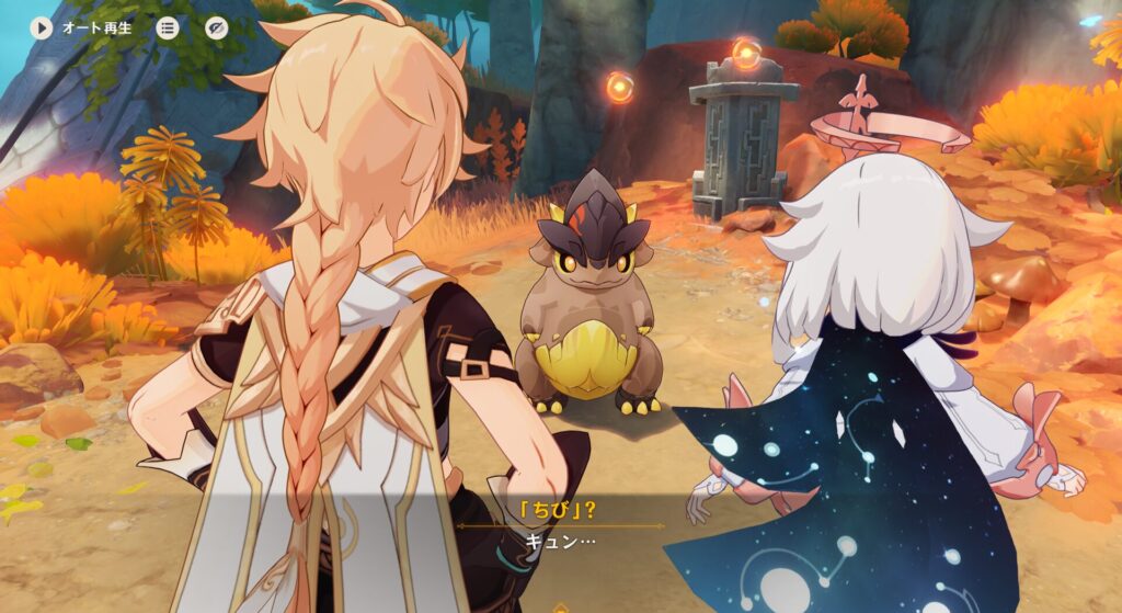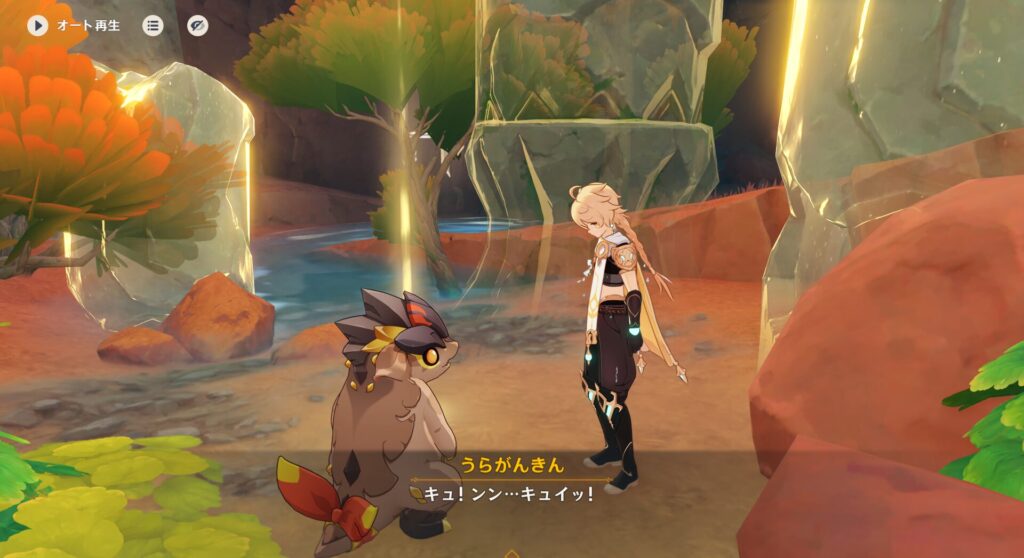 といったところでイファさんとオロルンの素材集めを再開したのですが、実はナタって特定の地域に侵入しただけでこのうらがんきんストーリーが始まってしまうという困った仕様になっております…!しかもその地域がどこか分かんないんだよな…!この後、フィールドをうろうろしているうちに回収してしまったストーリーがいくつかありますので、それを次回はご紹介していこうと思います。