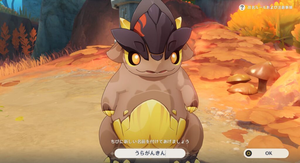 いつかこの432さんが神になったあかつきにはお前は神に仕えし神獣としてテイワットで崇め奉られるわけやからな!とにかく威厳のあるゴツい名前にしねぇとさ!って思ったんですよね。トイプーみたいなチョコちゃんだのココアちゃんだのみたいな可愛い名前では神獣らしくないじゃないですか。パワーのある名前を求めてうらがんきんとしました。